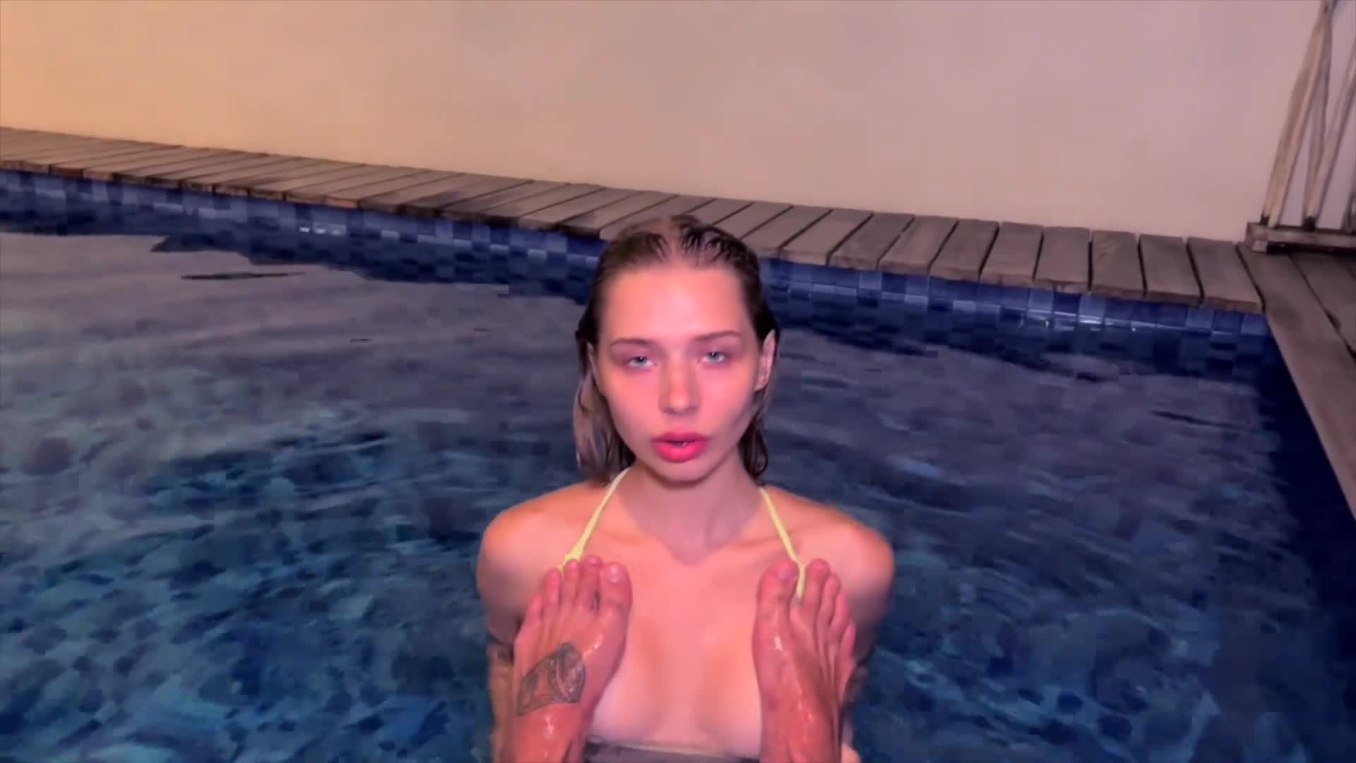 40. Sweet blowjob in the public pool. Cum on hair of Californiababe